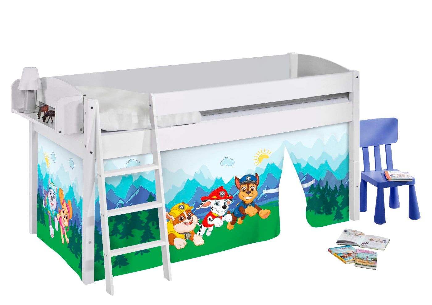 Kinder Hochbett IDA 4105 weiß Vorhang Paw Patrol blau Spielbett 200x90 cm