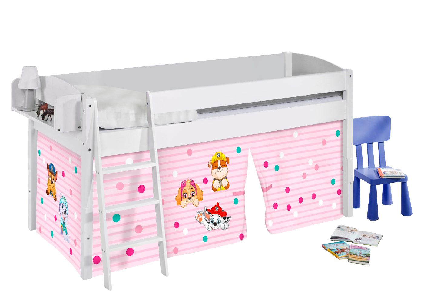 Kinder Hochbett IDA 4105 weiß Vorhang Paw Patrol rosa Spielbett 200x90 cm