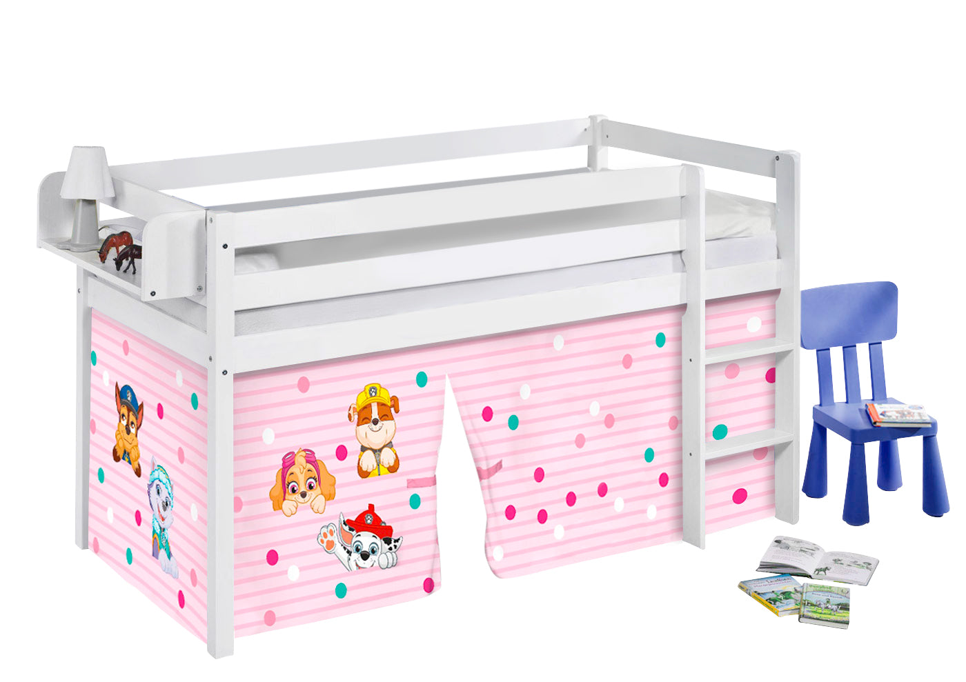 Kinder Hochbett JELLE 2054 weiss mit Vorhang Paw Patrol rosa Spielbett 200x90 cm